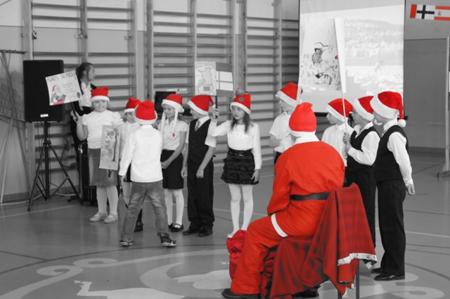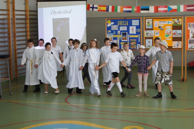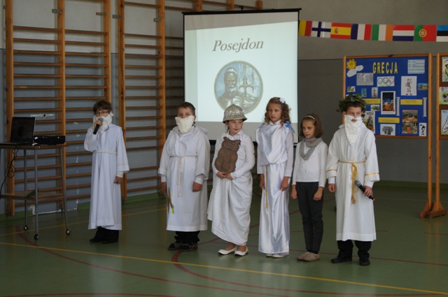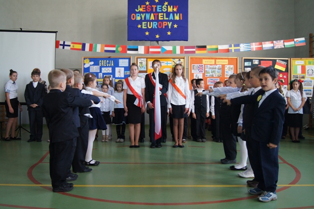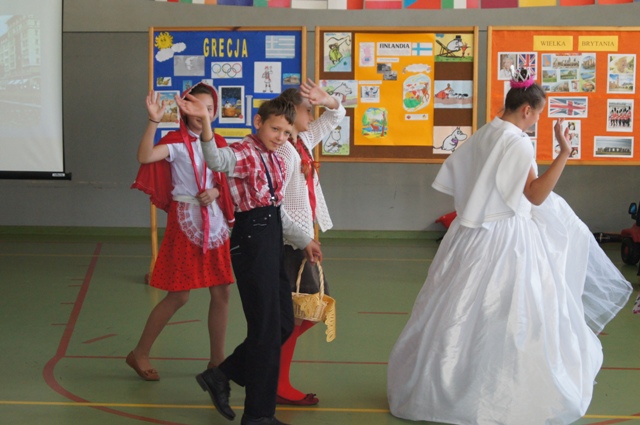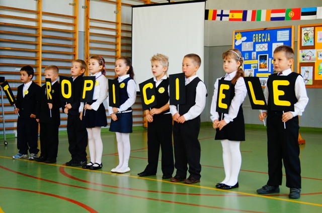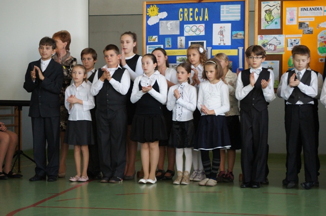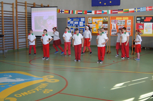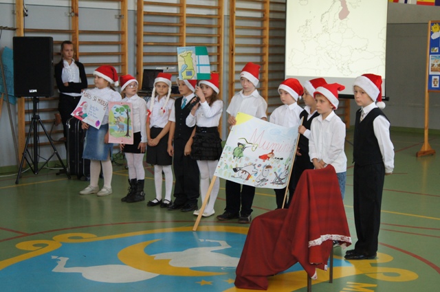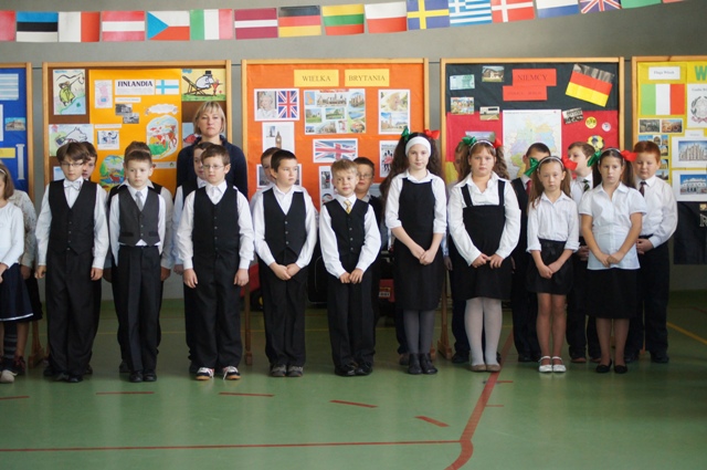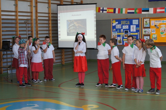 Nasi uczniowie zabrali wszystkich zaproszonych gości w podróż po wybranych krajach europejskich. Z klasą II gościliśmy w Finlandii i spotkaliśmy Mikołaja, który obdarował wszystkich uczniów prezentami ufundowanymi przez Radę Rodziców. Razem z klasą III odwiedziliśmy Włochy. Podziwialiśmy wspaniałe zabytki i wysłuchaliśmy piosenki pt.„Pan Francesko farmę miał”. Żywiołowe wykonanie tego utworu wyzwoliło salwy śmiechu wśród widzów. Antyczną Grecję poznaliśmy dzięki uczniom klasy IV, oni także zaprezentowali taniec „Zorba”. Mieliśmy też możliwość przebywania na balu u królowej angielskiej, a to dzięki uczniom klasy V, którzy nas tam zabrali. Klasa VI w bardzo ciekawy sposób zaprezentowała nam największe osiągnięcia Niemiec z różnych dziedzin życia.