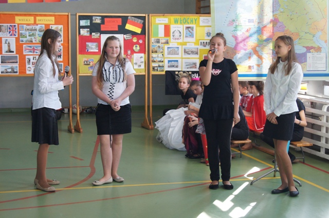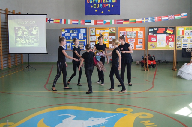 W czasie trwania uroczystości mogliśmy oglądać prezentację multimedialną prezentowanych krajów, którą przygotowali uczniowie klasy VI.