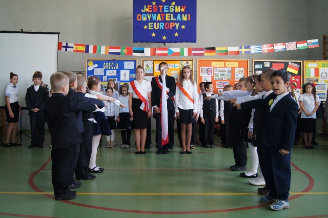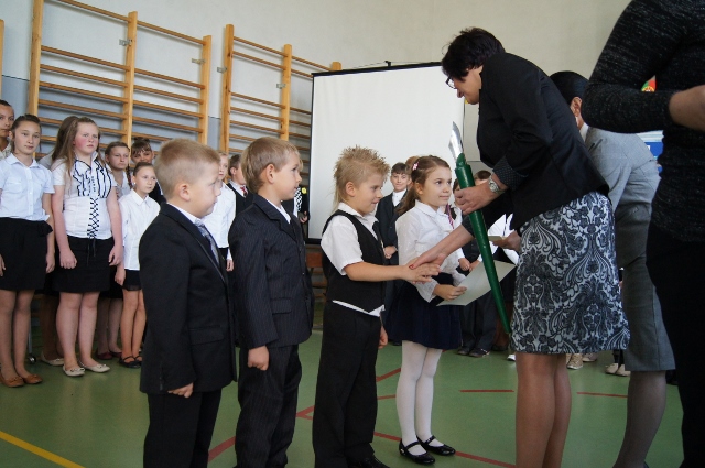 W dniu obchodów Święta Patrona dzieci klasy I zostały przyjęte w poczet uczniów naszej szkoły. Dzieci złożyły uroczyste ślubowanie, pasowania dokonała dyrektor szkoły pani Jolanta Zmyślona. Uczniowie klasy I otrzymali akty pasowania, upominki ufundowane przez Radę Rodziców, podarunki i książeczki oszczędnościowe SKO z wkładem 10 zł , które wręczyła przedstawicielka z BS „Czarnków”.