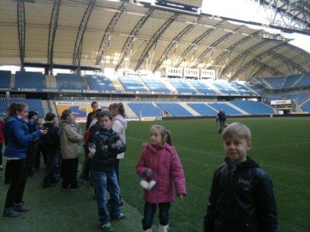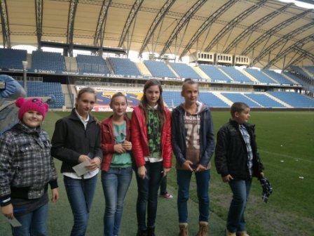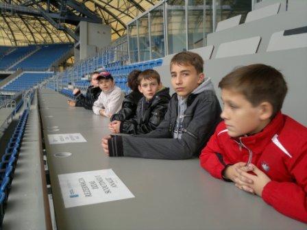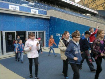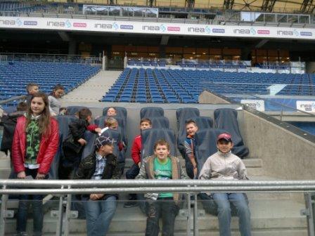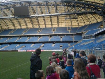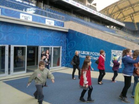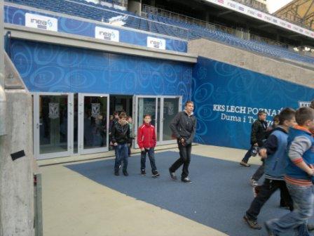 Drugi punkt programu to zwiedzanie Stadionu Lecha, gdzie zobaczyliśmy salę konferencyjną, korytarz sław, szatnię gości, lożę prezydencką i trybunę prasową. Mieliśmy również okazję stanąć na płycie stadionu, poczuć się jak wchodzący na mecz piłkarze. Małe zakupy w sklepie firmowym Lech były gratką dla prawdziwych kibiców.