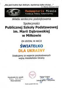 ŚWIATEŁKO DLA UKRAINY – DZIĘKUJEMY